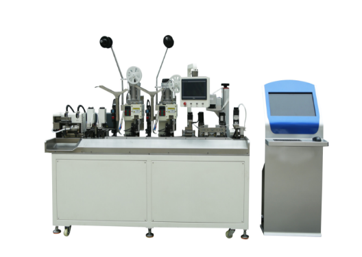 该设备可实现双头穿号码管热缩打端子,线材一端自动切线,剥皮,穿号码管,打端,热缩;另一端自动切线,剥皮,穿号码管,打端,热缩等功能的全自动双穿热缩(号码管)端子机