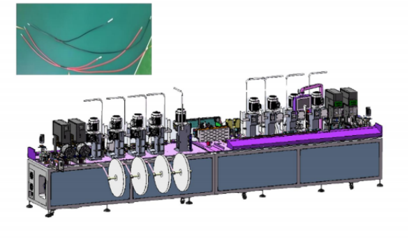此设备可实现线材一端自动切线,剥皮,端子压着,另一端自动切线,剥皮,可同时多根线缆穿热缩管合并压接等功能